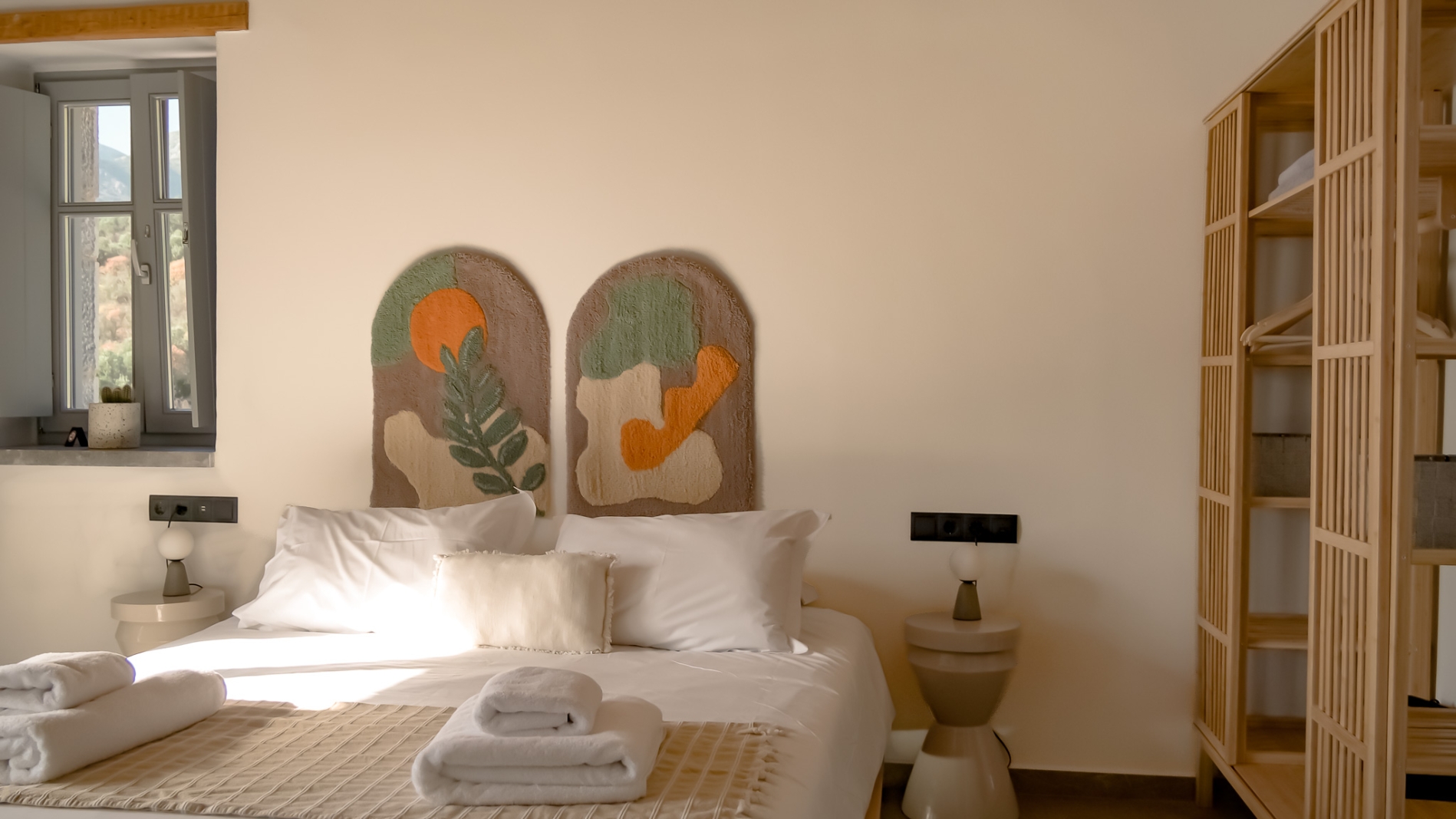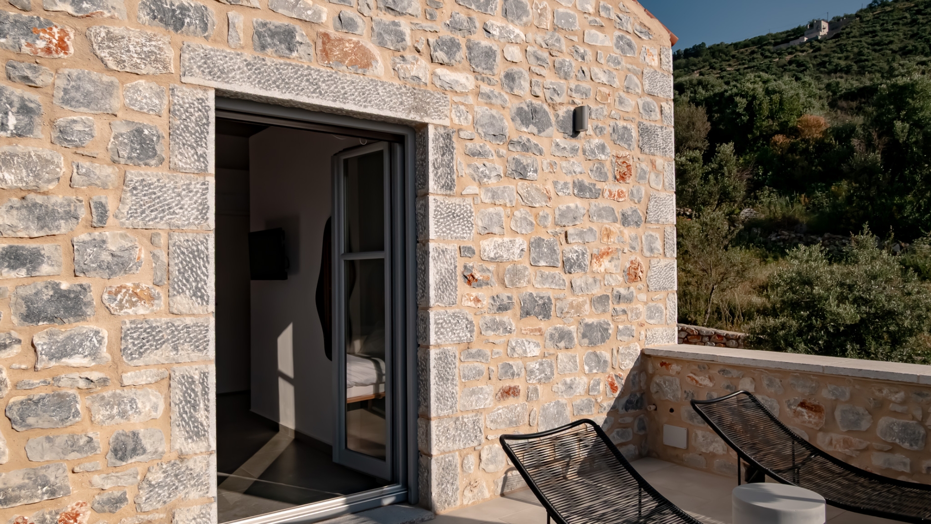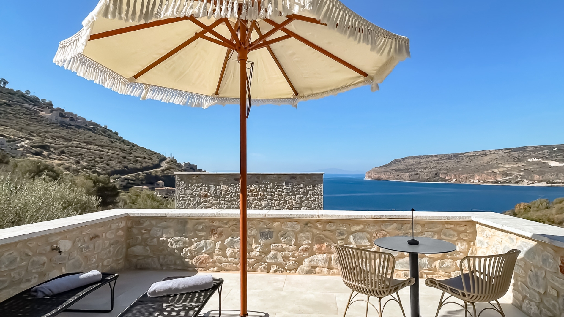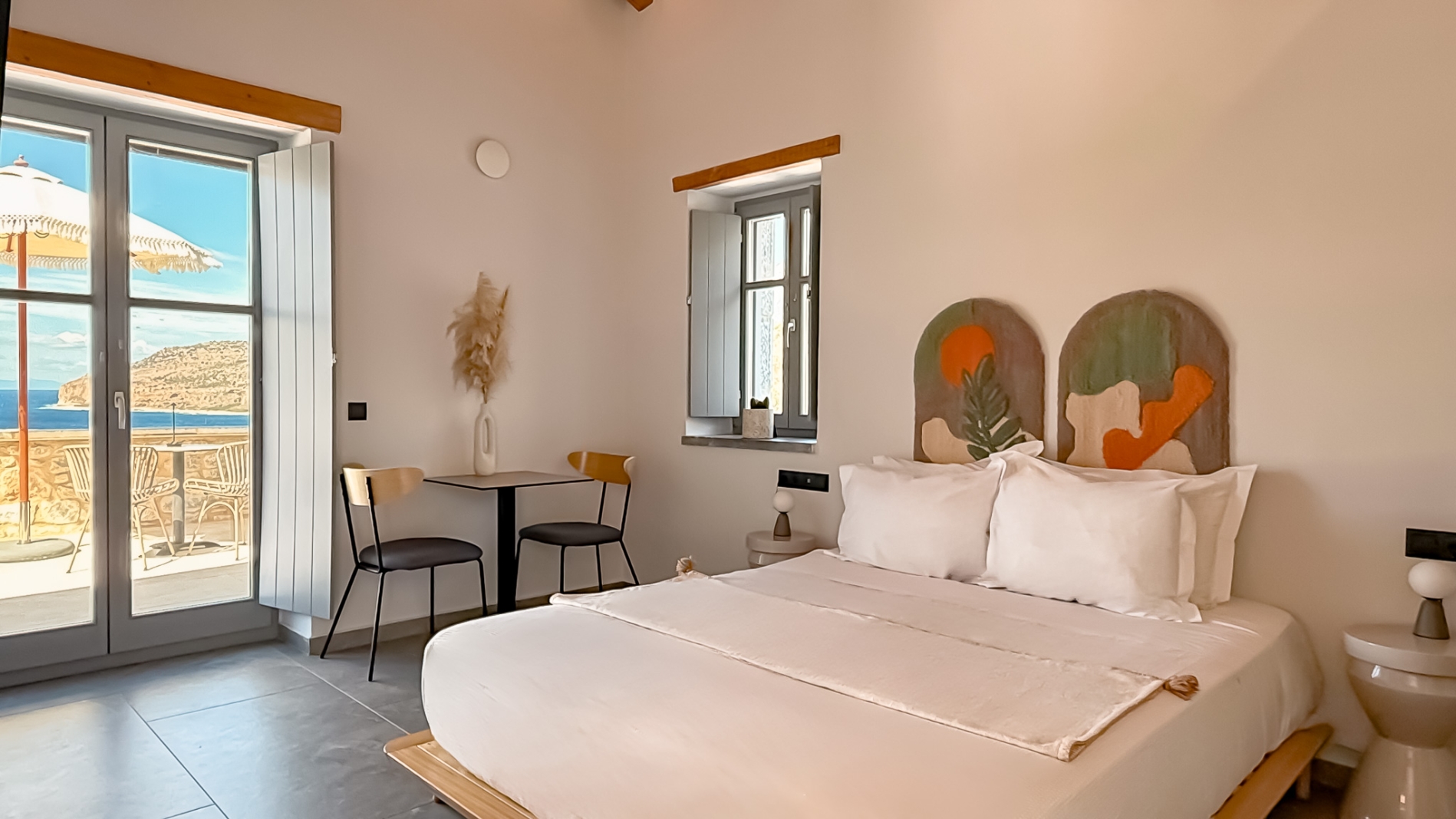 Located in the upper floor of the rear building B and can accommodate up to 2 people. Good sized 1 room apartment with a kitchenette and a large balcony with very nice sea views.