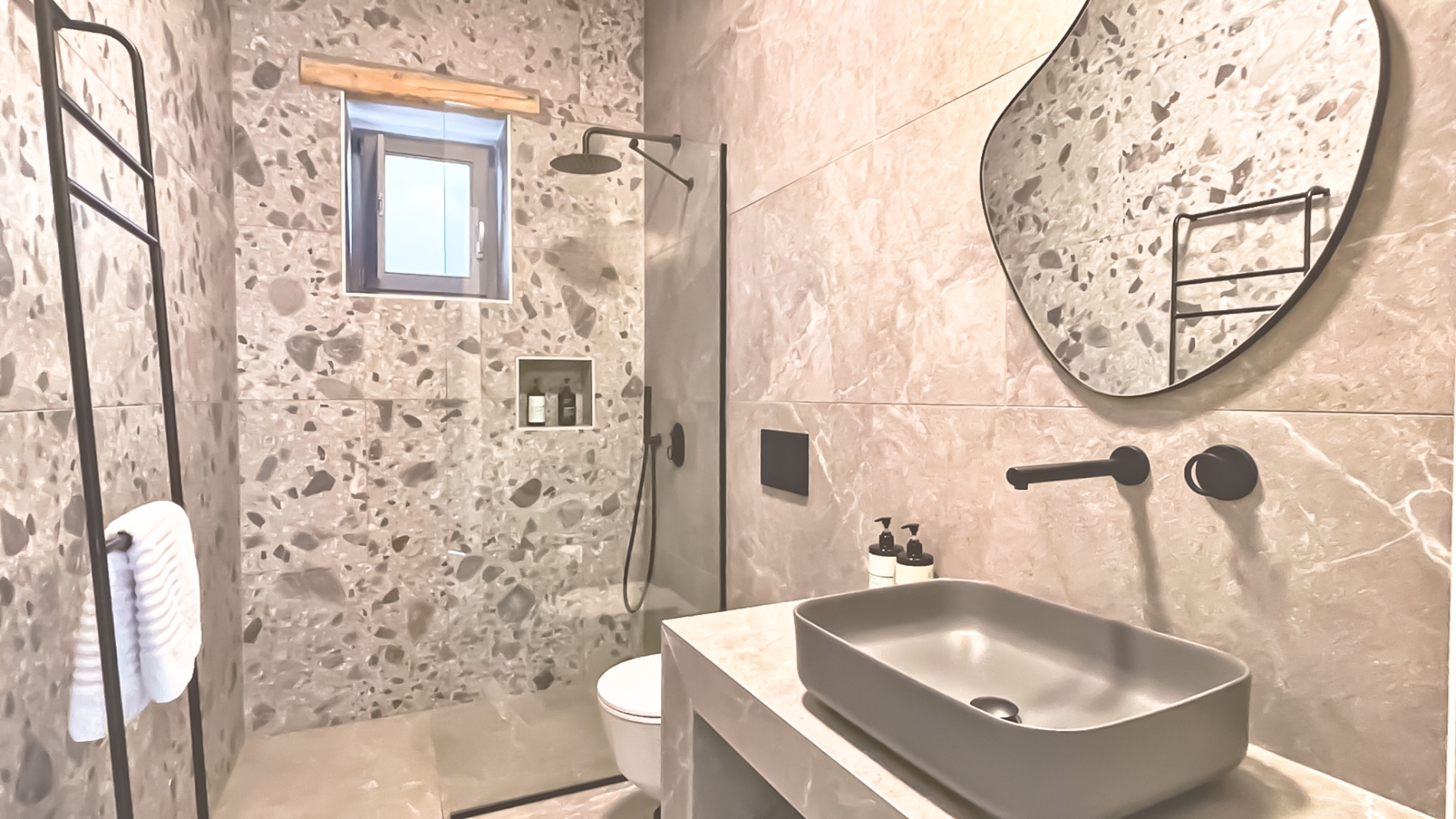 Located in the ground floor of the rear building B. Can accommodate up to 4 people featuring 1 Master bedroom, 1 additional sleeping room, 1 bathroom, 1 additional toilet & living room with a large kitchen. You will enjoy a spacious veranda with sea view and a covered archway.